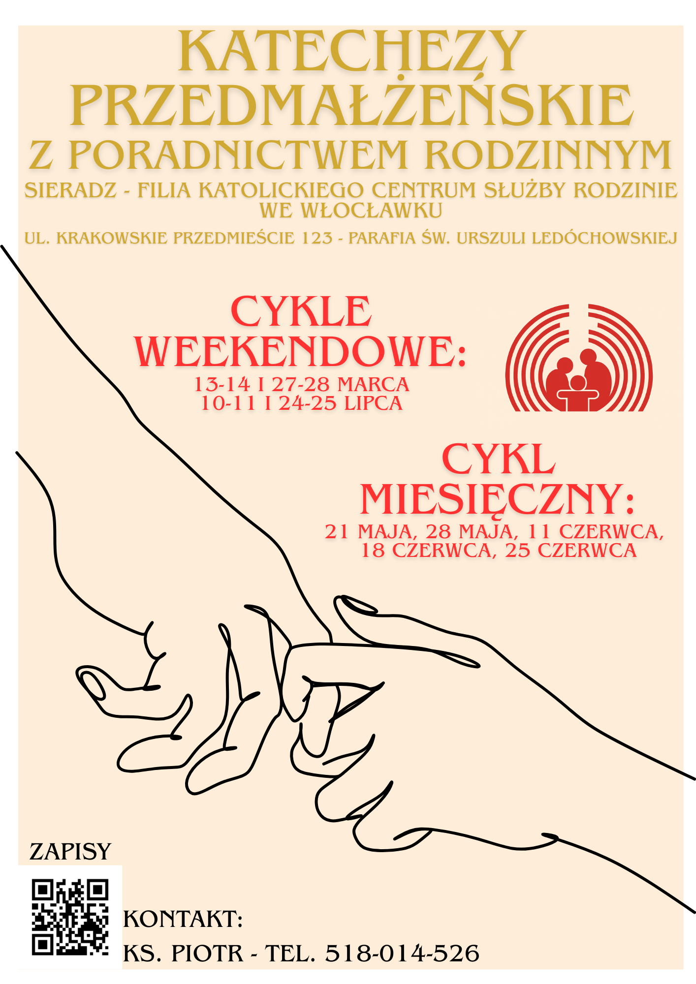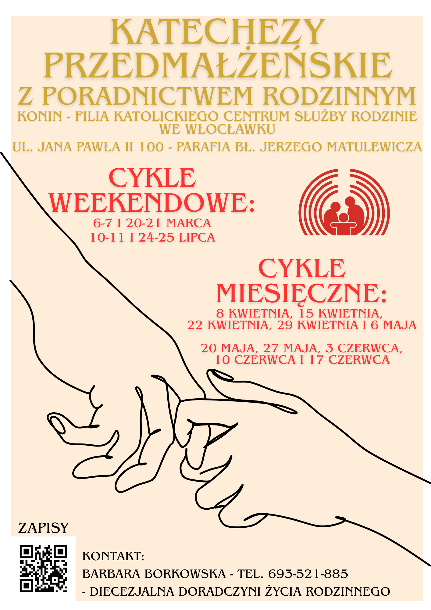 Kompleksowe przygotowanie do sakramentu małżeństwa prowadzone przez doswiadczonych specjalistow. Program obejmuje spotkania z doradcami zycia rodzinnego, psychologiem oraz duchownym.