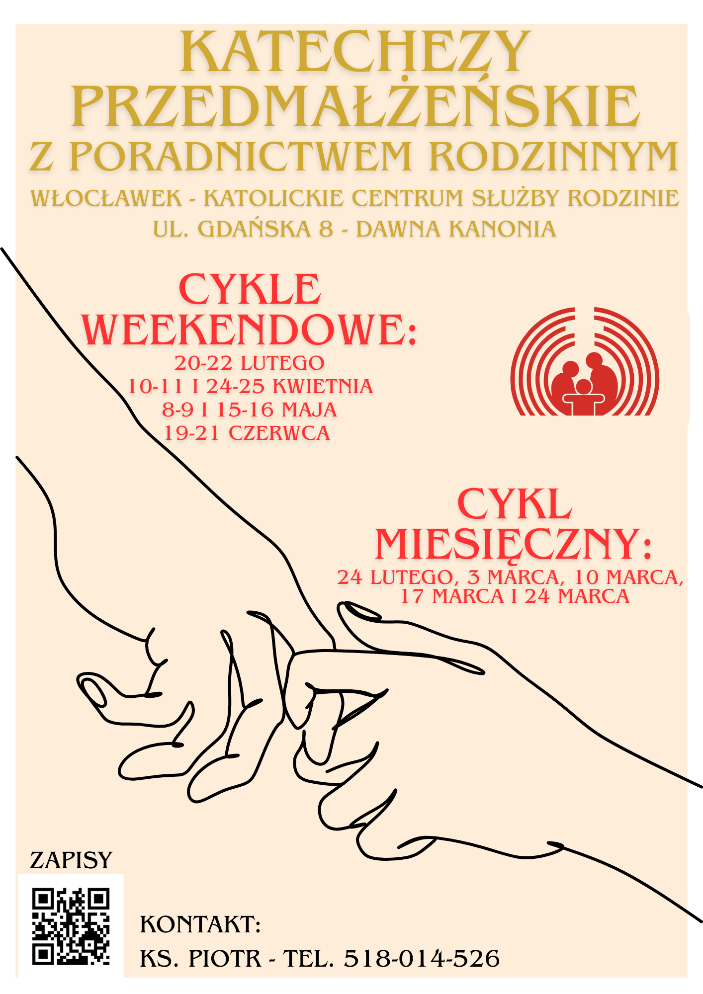 Katolickie Centrum Służby Rodzinie to miejsce, gdzie narzeczeni, małżonkowie i rodziny mogą znaleźć profesjonalne wsparcie oraz duchowe towarzyszenie. Działamy na terenie całej Diecezji Włocławskiej, łącząc wartości chrześcijańskie z nowoczesnym podejściem do poradnictwa rodzinnego.
